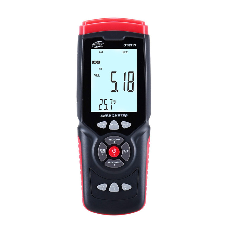 رنج اندازه گیری سرعت باد : 0.0~45.0 رنج اندازه گیری رطوبت : 90% RH رنج اندازه گیری دما : 0~45 سانتی گراد واحد های اندازه گیری باد : m/s Ft/min Knots Km/h Mph CFM(FT3/MIN)