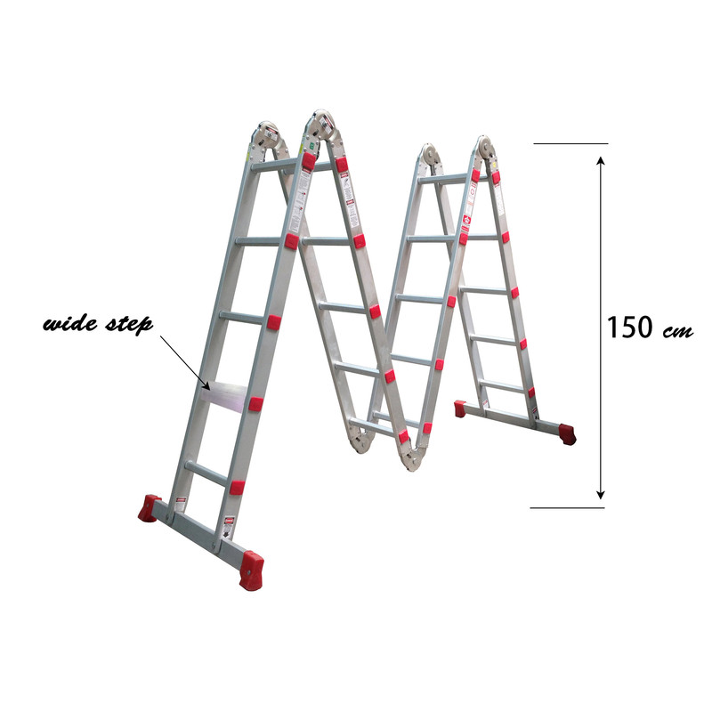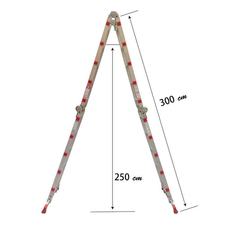 وزن قابل تحمل نردبان 150 کیلوگرم و مجاز 130 کیلوگرم ، ارتفاع نردبان 6 متر ، ارتفاع نردبان در حالت دو طرفه 2.75 متر ، ارتفاع نردبان در حالت پل شکل 1.5 متر ، ارتفاع نردبان در حالت بسته 1.5 متر ، نوع پله: پله مربع پرسی مستحکم. ، یکی از مهم ترین نکات و قطعات نردبان دوازده حالته لولا دار، استاندارد و مستحکم بودن مفصل ها و قفل آن می باشد که خوشبختانه تمامی این مفصل ها طراحی و تولید صنایع آلوپات بوده و به هیچ عنوان از مفصل های نا امن وارداتی استفاده نمی شود ، شاید در نگاه اول نردبان به صورت یک ابزار ساده به نظر برسد ولی یکی از پر اهمیت ترین نکاتش تامین ایمنی و امنیت کاربر می باشد که به حول قوه الهی نزدیک به نیم قرن تامین کننده صد در صد امنیت و ایمنی کاربرانمان هستیم. ، پروفیل از جنس آلیـاژ آلومینیوم مخصـوص استفاده شده در ساخت این نردبان علاوه بر تأمین استحـکام بالا سبب وزن کم این نردبان جهت راحتی حمل و نقل شده است. ، نفوذ عمیق پله ها در پروفیل های جانبی و پرس انتهای پله ها موجب اتصال امن آنها گردیده است. ، لولاهای تعبیه شده به قفل های مطمئن چنان طراحی شده اند که به این نوع نردبـان قابـلیت تبدیل شدن به 12 حالت مختلف را می دهد. ، به علت ظرافـت به کار گرفته شده در طراحی نردبـان ها با جمع شدن چهار تکه نردبان بر روی هم، نردبان به یک جعبه تبدیل می شـود و راحـتی هر چه بیشتر در حمـل و نقـل نردبـان فراهم می شود. ، قابلیت بالای حفظ تعادل به علت استفاده از لاستیک های مخصوص ضد لغزش در پایه های نردبان. ، سطح مقطع مربع شکل (چند ضلعی) موجب استحکام بیشتر پـله ها شده و همچنین راحتی هر چه بیشتر را برای کاربر تامین کرده است. ، به دلیل کیفیت بالای آلیاژ به کار رفته در پروفیل ها، از رنگ کردن محصولات اجتناب می کنیم ولی در صورت درخواست متقاضی به صورت سفارشی انجام می گیرد. ، صنایع آلوپات دارای استاندارد ایران و ISO 9001:2015 در سیستم مدیریت کیفیت، صادره از Royal Cert آلمان می باشد و محصولات این شرکت با رعایت آخرین استانداردهای بین المللی در این زمینه تولید می گردد.