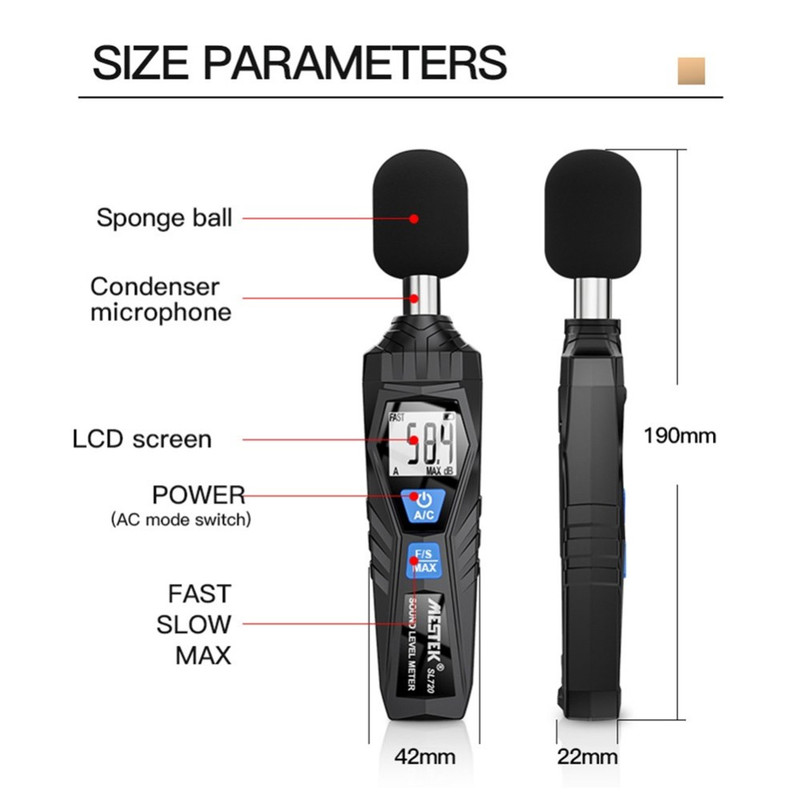 دامنه اندازهگیری: 30~130 dBA میلیمتر