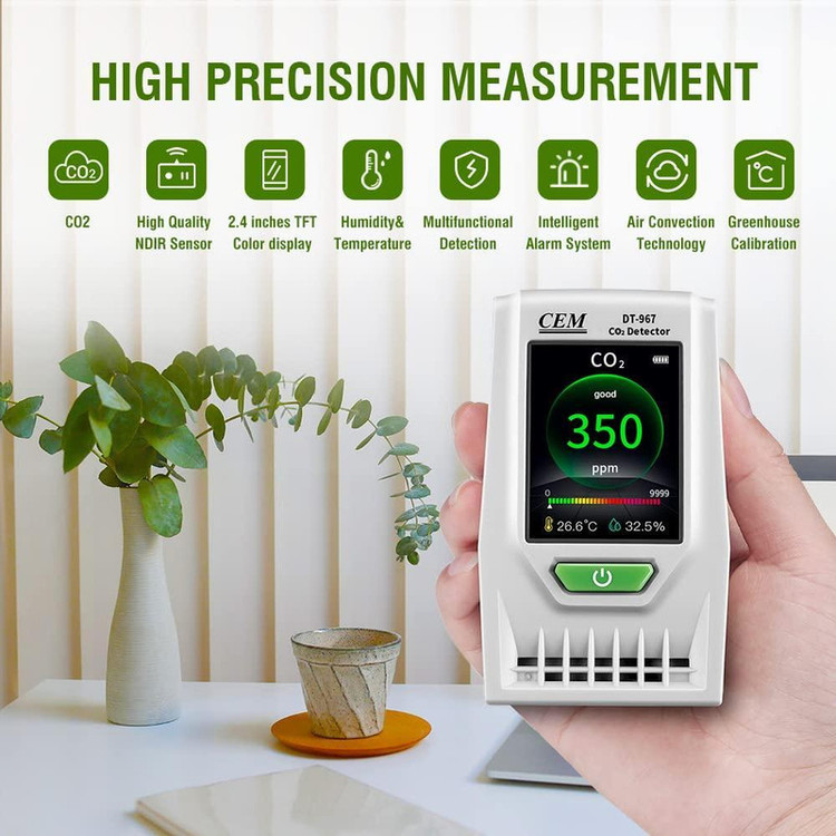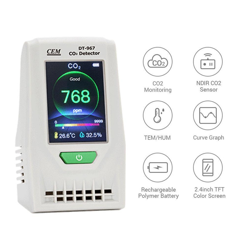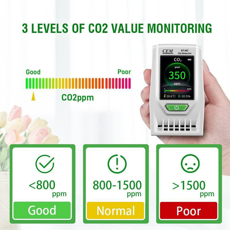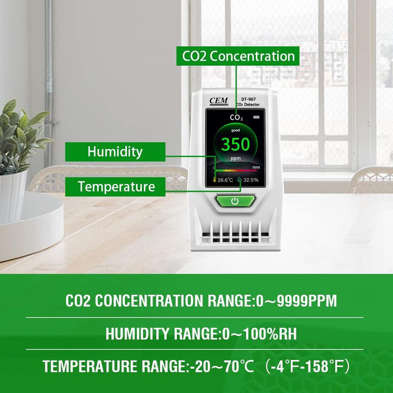 دامنه اندازهگیری: کربن دی اکسید ( 0-9999ppm ) دما (﹣10 تا 60 درجه سانتیگراد ) رطوبت (0.1 تا 100.0%) میلیمتر