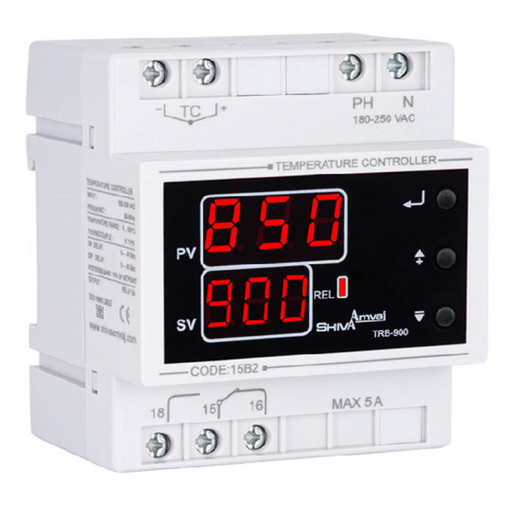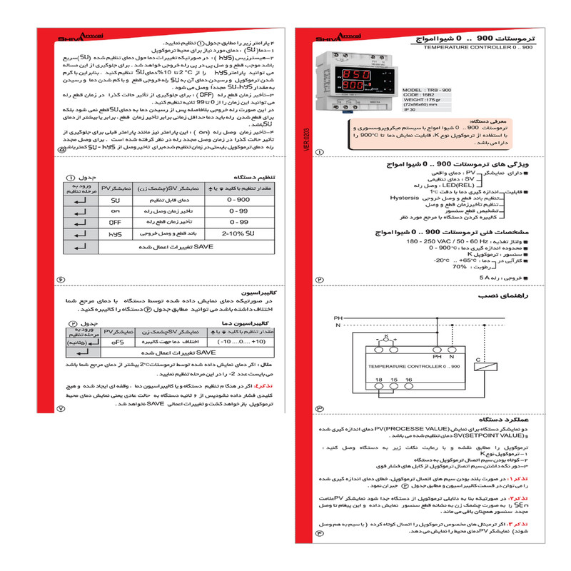 ولتاز تغذیه ۱۸۰-۲۵۰ ولتاژ متناوب و ۶۰-۵۰ هرتز محدوده اندازه گیری ۰-۹۰۰ سانتی گراد نوع سنسور ترموکوپل k کارایی در دما: ۶۵+..۲۰– و رطوبت : ۷۰درصد خروجی رله ۵ آمپر