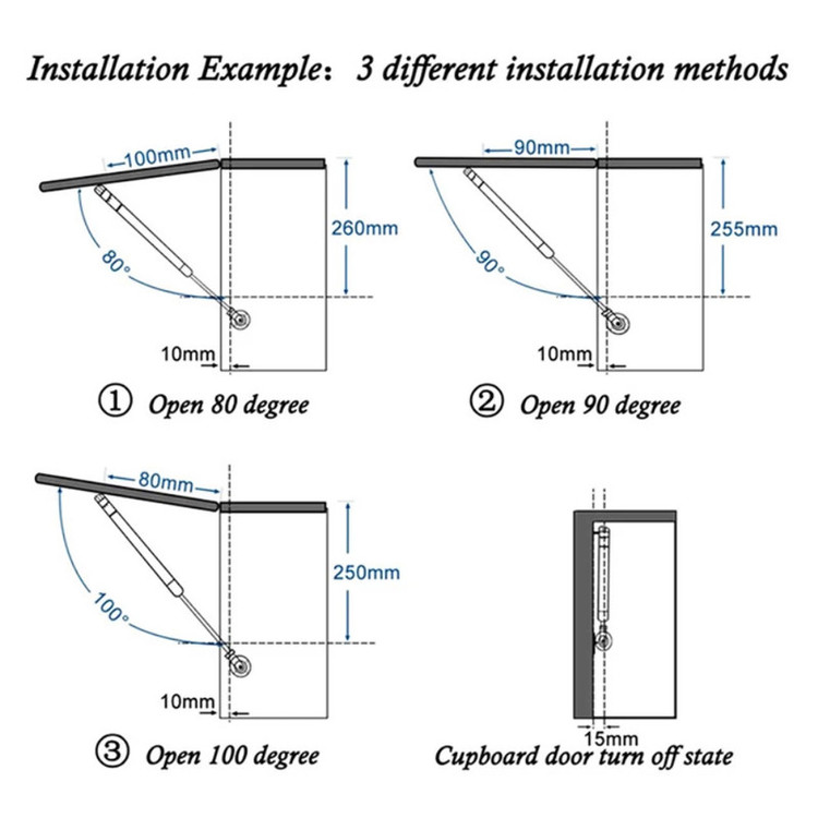 اقلام همراه: _ 2 عدد جک کابینت با توان 100 نیوتن _ پایه های جک _ پیچ های نصب