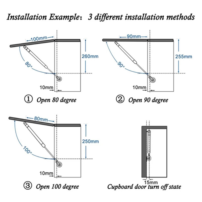 اقلام همراه: _ ۲ عدد جک کابینت با توان ۱۰۰ نیوتن _ پایه های جک _ پیچ های نصب