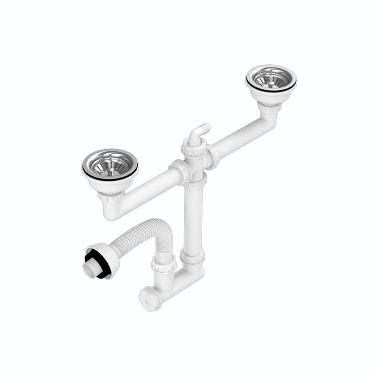 سیفون ظرفشویی فانتزی دو لگن دایره ای جهانیار. بدون سرریز سینی دارای خروجی ماشین لباسشویی. دارای پیچ بلند مخصوص سینک های گرانیتی