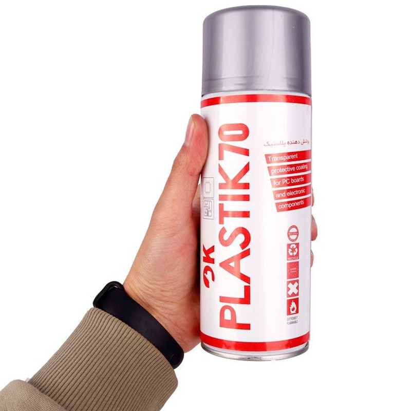 گروه تولیدی صنعتی اسپری اوکی با بیش از 3 دهه تلاش در تولید انواع اسپری ها و حلالهای شیمیایی، به تازگی محصولی جدید را با عنوان اسپری پلاستیک اوکی مدل 70 حجم 400 میلی لیتر را تولید و به بازار عرضه کرده است. این اسپری برای پوشش برد های الکترونیکی، محافظت از ابزار و قطعات در برابر عوامل جوی، اسید، بخار، آب، ولتاژ و اتصال استفاده می گردد.