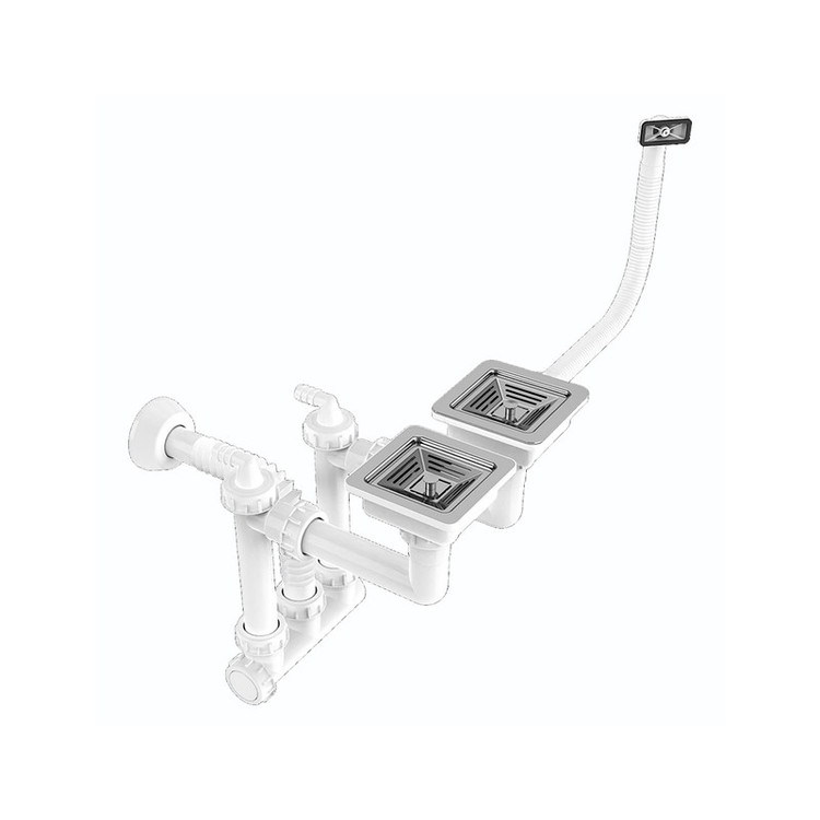 سیفون فانتزی دو لگن مربع دارای سر ریز لگن استفاده از پیچ و مهره برنجی و نصب و آب بندی راحت بدون نیاز به نوار تفلون