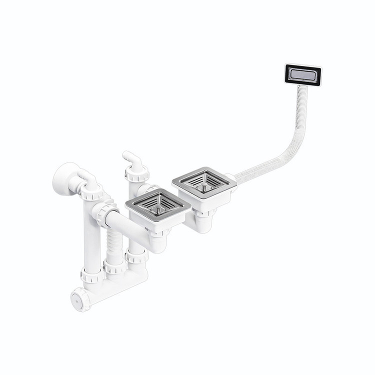 سیفون فانتزی دو لگنه مربع کمجا دارای سرریز لگن پلاک دار استیل و دوخروجی استفاده از بهترین نوع متریال در ساخت