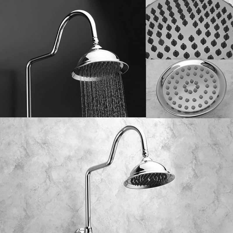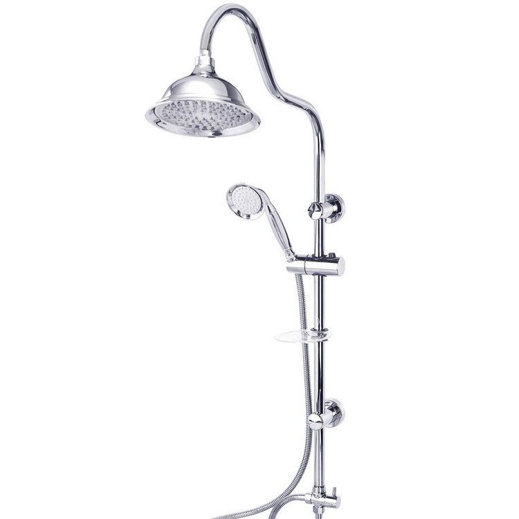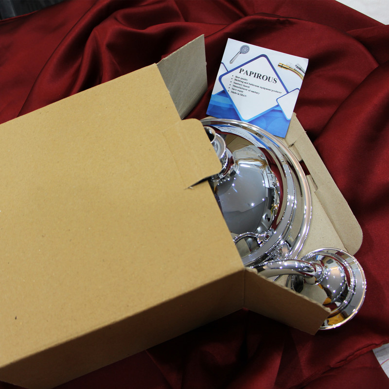 سه راه فلزی، شلنگ استیل ریز بافت، گوشی و سردوش شیپوری کروم، جاصابونی، پایه های با پوشش نیکل کروم، آسانسوری دکمه ای قابل تنظیم، شلنگ رابط دوش، لوله استیل، واشر های اب بندی و پیچ و رول پلاک جهت نصب.