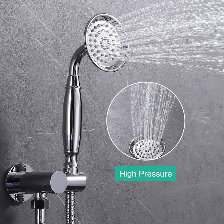 مجهز به منافذ پلیمری که رسوب زدایی را راحت میکند، تعداد زیاد نازل اب جهت پخش مناسب آب، دارای جاصابونی، شلنگ استیل ریزبافت، قابلیت تنظیم ارتفاع گوشی، دارای پیچ و رول پلاک برای نصب