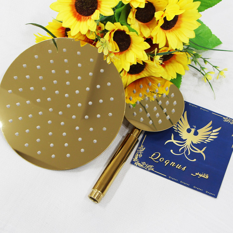 سه راه با کیفیت، شلنگ استیل ریز بافت، گوشی و سردوش استیل، جاصابونی، پایه های با پوشش تحت خلا طلایی، آسانسوری دکمه ای قابل تنظیم، شلنگ رابط دوش، لوله استیل، واشر های اب بندی و پیچ و رول پلاک جهت نصب.