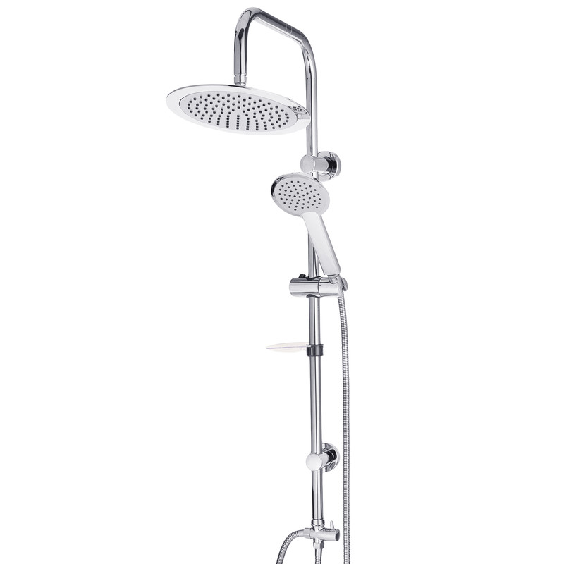 سه راه با کیفیت، شلنگ استیل ریز بافت، گوشی و سردوش استیل، جاصابونی، پایه های با پوشش نیکل کروم، آسانسوری دکمه ای قابل تنظیم، شلنگ رابط دوش، لوله استیل، واشر های اب بندی و پیچ و رول پلاک جهت نصب.