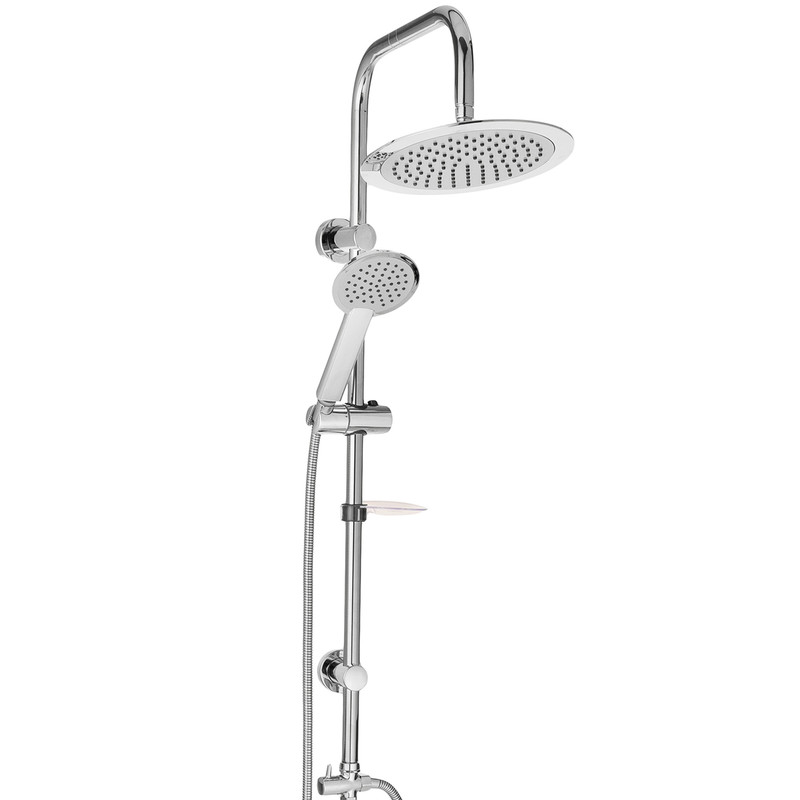 شلنگ دوش، شلنگ رابط دوش، سه راه فلزی، پایه های نگهدارنده، جاصابونی، گوشی و سردوش، بالابر قابل تنظیم گوشی.
