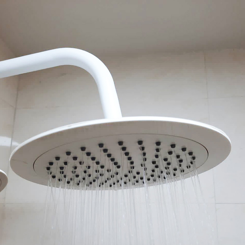 سه راه با کیفیت، شلنگ استیل ریز بافت، گوشی و سردوش با فشار، جاصابونی، پایه ها، آسانسوری دکمه ای قابل تنظیم، شلنگ رابط دوش، لوله استیل، واشر های اب بندی و پیچ و رول پلاک جهت نصب.