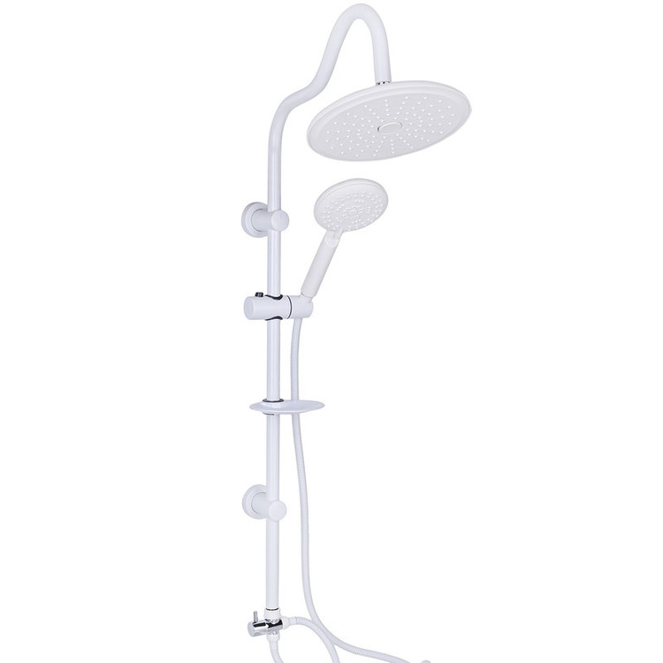سه راه با کیفیت، شلنگ استیل ریز بافت، گوشی و سردوش مجهز به حالت رسوبگیری، جاصابونی، پایه ها، آسانسوری دکمه ای قابل تنظیم، شلنگ رابط دوش، لوله استیل، واشر های اب بندی و پیچ و رول پلاک جهت نصب.