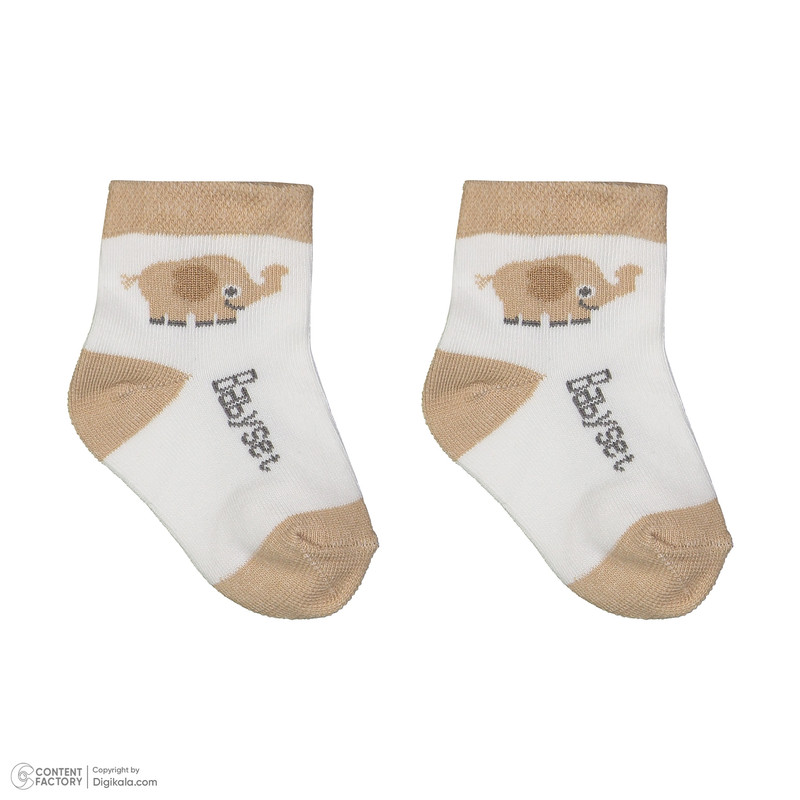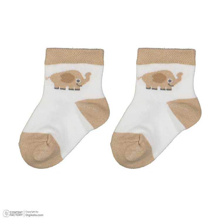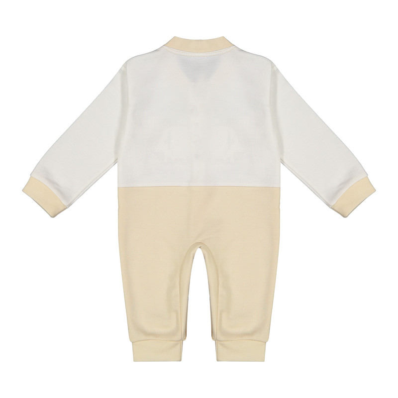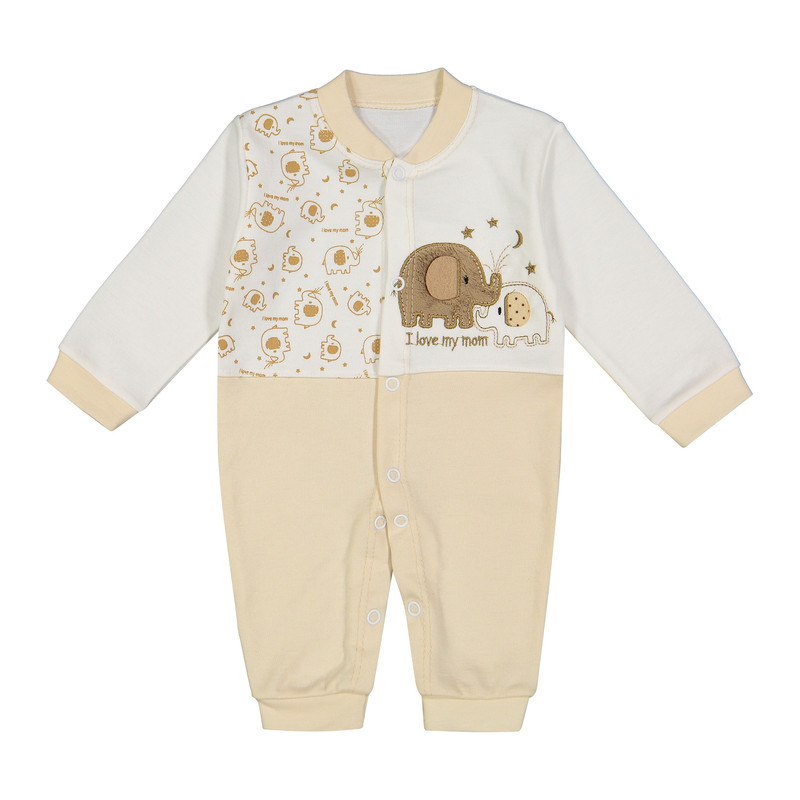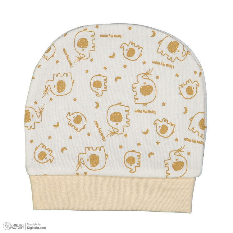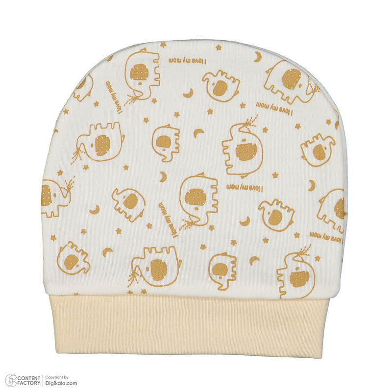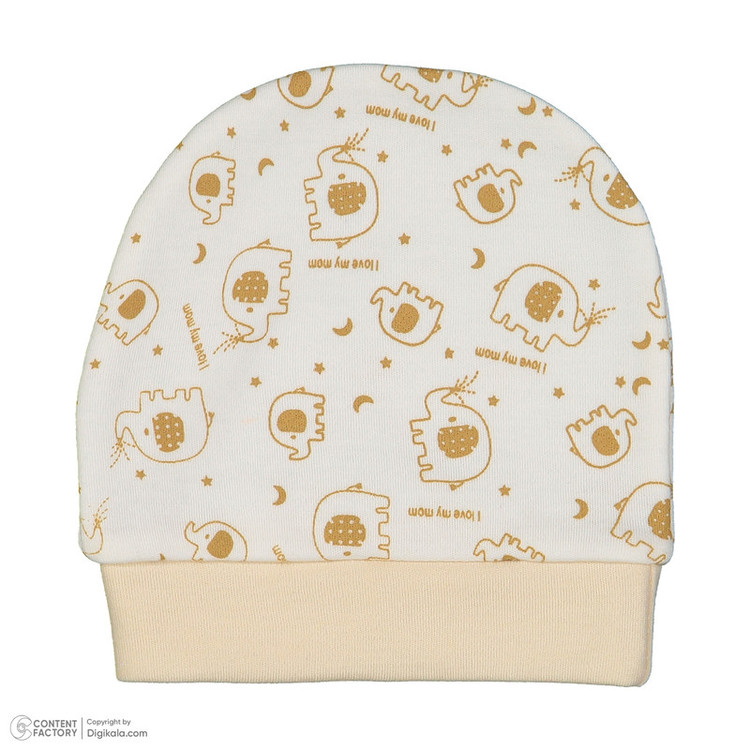 سرهمی جلو دکمهدار با چاپ فیل و طرح فانتزی در بخش بالاتنه، همراه با کلاه طرحدار هماهنگ، جوراب دو رنگ با چاپ فیل، و یک جفت دستکش ساده به رنگ روشن طراحی شده است.