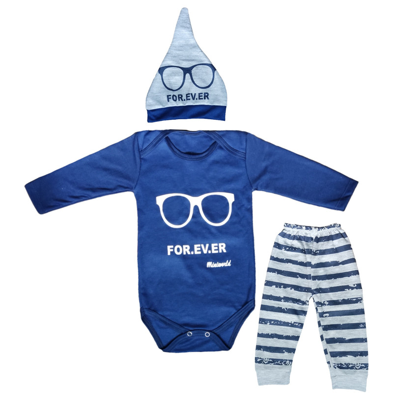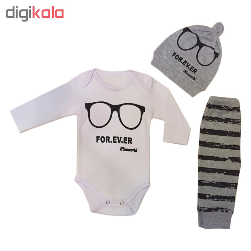 ست 3 تکه لباس نوزاد طرح عینک کد 01