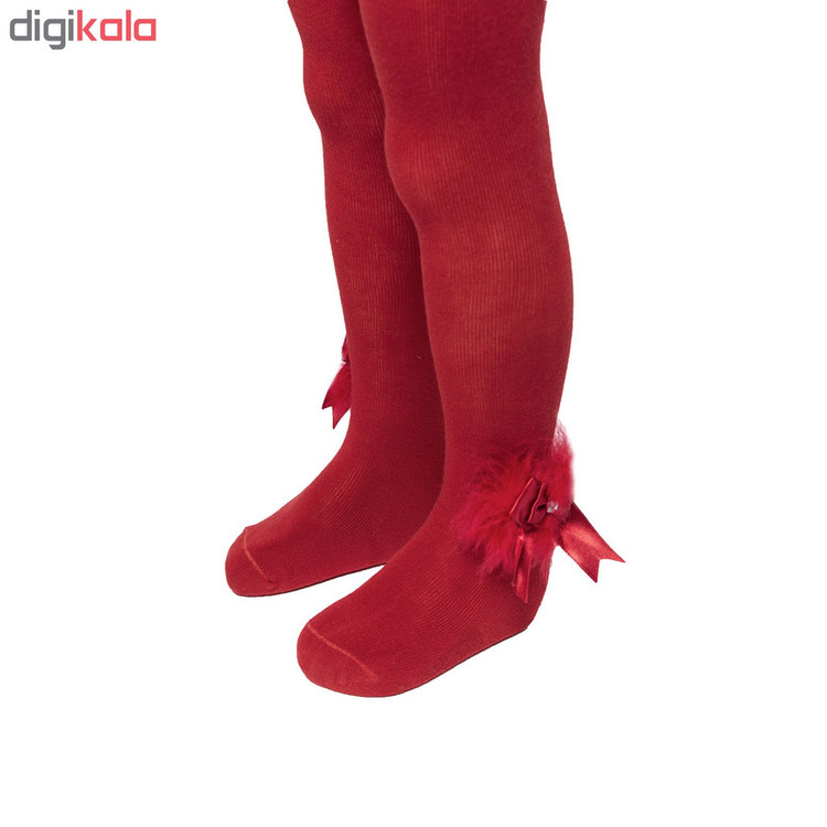 - جوراب شلواری نوزادی دخترانه - دارای المان تزیینی روبان و پر در قسمت مچ پا - دارای پارچه ساده