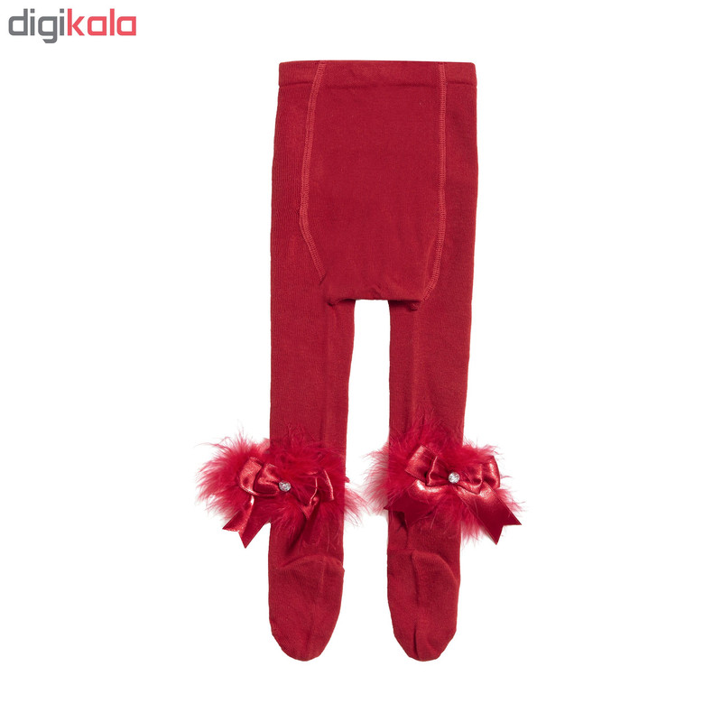 - جوراب شلواری نوزادی دخترانه - دارای المان تزیینی روبان و پر در قسمت مچ پا - دارای پارچه ساده