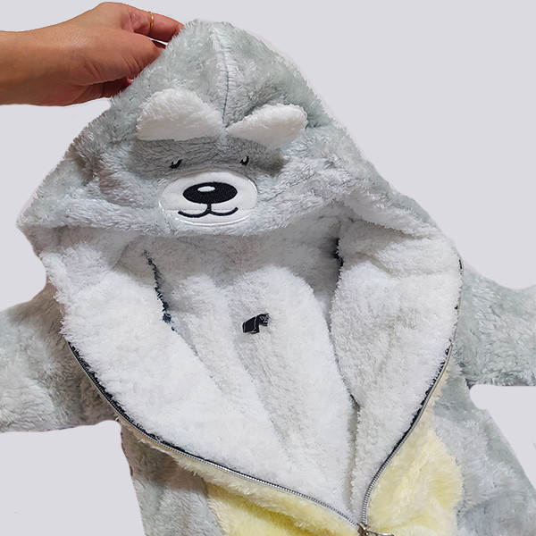 جزئیات: دارای یک زیپ بلند برای سهولت در استفاده لایه رویی و لایه داخلی پولیش و خز دارای کلاه گوشدار فانتزی دارای پاپوش متصل دارای سرآستین و دمپا کشی برای جلوگیری از نفوذ سرما