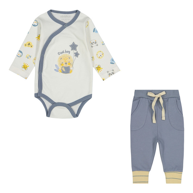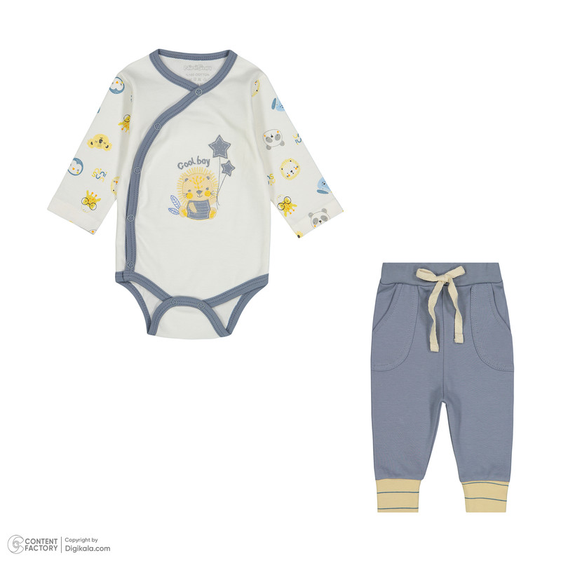 ست بادی آستین بلند و شلوار راحتی نوزادی نی نی سان مدل 001