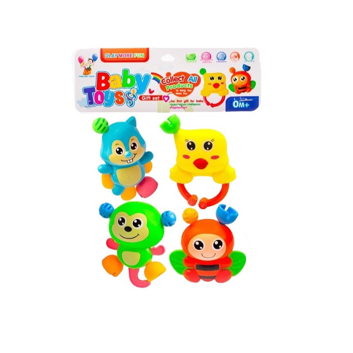 ست جغجغه مجموع 4 عددی ساخته شده از مواد ضد حساسیت تولید داخل ساخت ایران....مشتری گرامی لطفا هنگام سفارش کالا دقت فرمایید رنگ بندی داخل بسته ها متفاوت میباشد اما طرح مطابق تصویر است.
