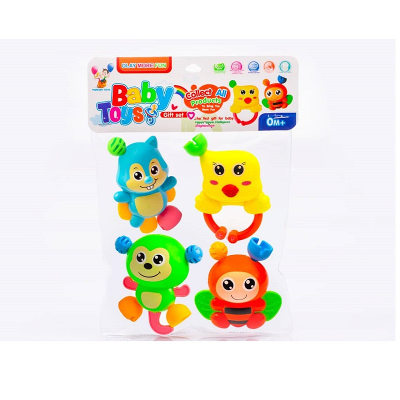 ست جغجغه مجموع 4 عددی ساخته شده از مواد ضد حساسیت تولید داخل ساخت ایران....مشتری گرامی لطفا هنگام سفارش کالا دقت فرمایید رنگ بندی داخل بسته ها متفاوت میباشد اما طرح مطابق تصویر است.