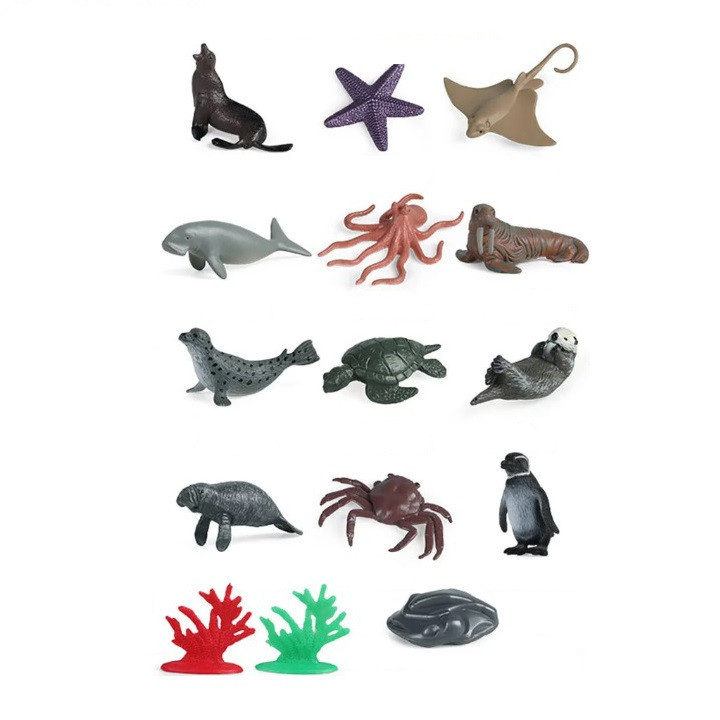 محصول وارداتی ، کیفیت ساخت بالا ، مجموعه 15 عددی ، بسته بندی فانتزی جذاب ، حیوانات اقیانوس