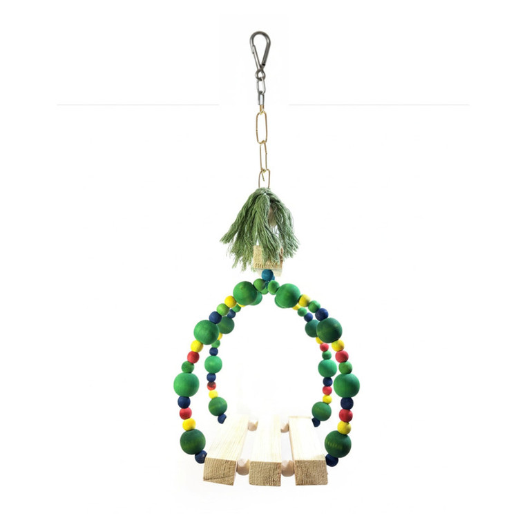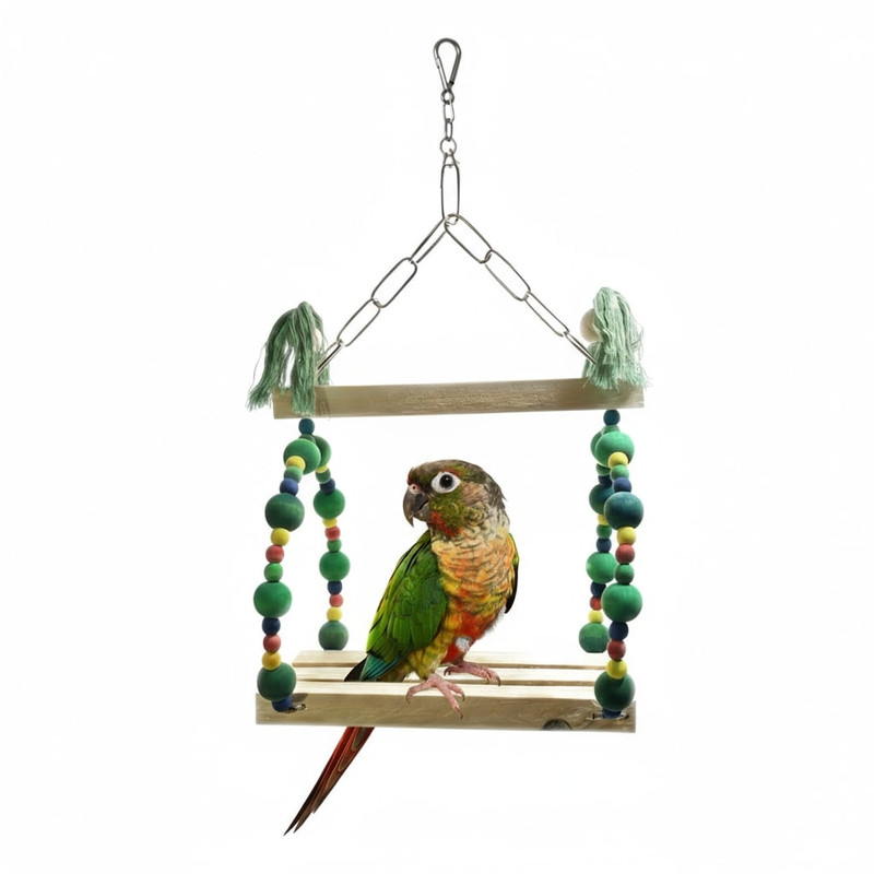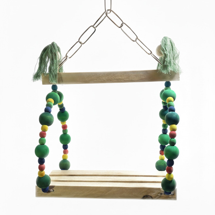 این تاب و اسباببازی چوبی رنگارنگ، نه فقط یک وسیله بازی، بلکه یک ضرورت برای سلامت روانی و جسمی پرنده زینتی شما است. فراهم کردن یک محیط غنی و محرک در قفس، برای حفظ شادابی، جلوگیری از افسردگی و رفتارهای مخرب مانند پَرکنی حیاتی است.