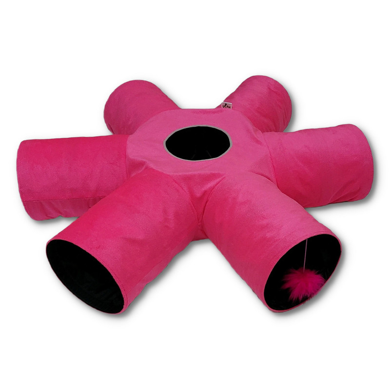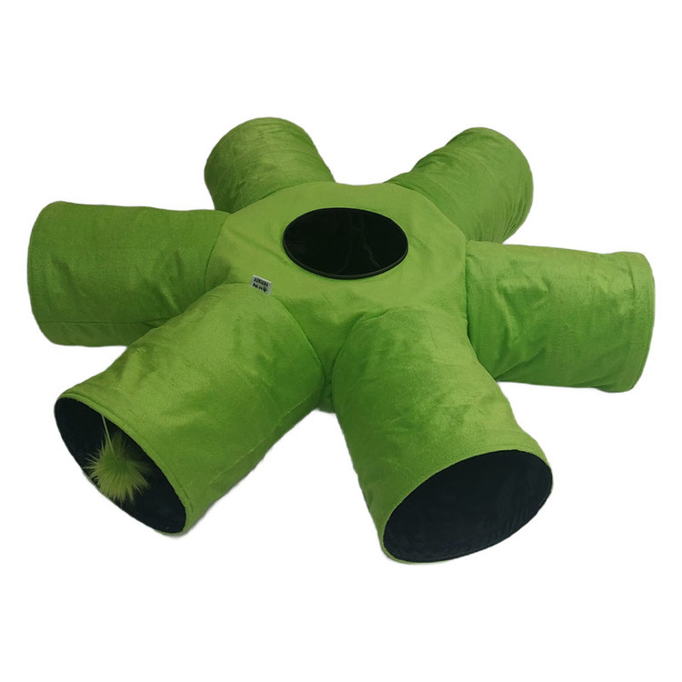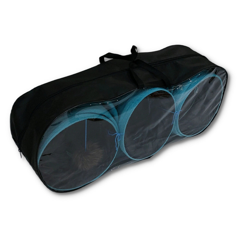قابل شستشو در ماشین لباسشویی پارچه داخلی ضدآب ایستادگی ومقاومت بالا دارای باکس حمل دارای لایه های صدادار دارای پوم پوم جمع شونده مناسب بچه گربه ها ، گربه های بالغ، خرگوش و جونده های کوچک مناسب بازی ، استراحت و جای خواب بی نظیر