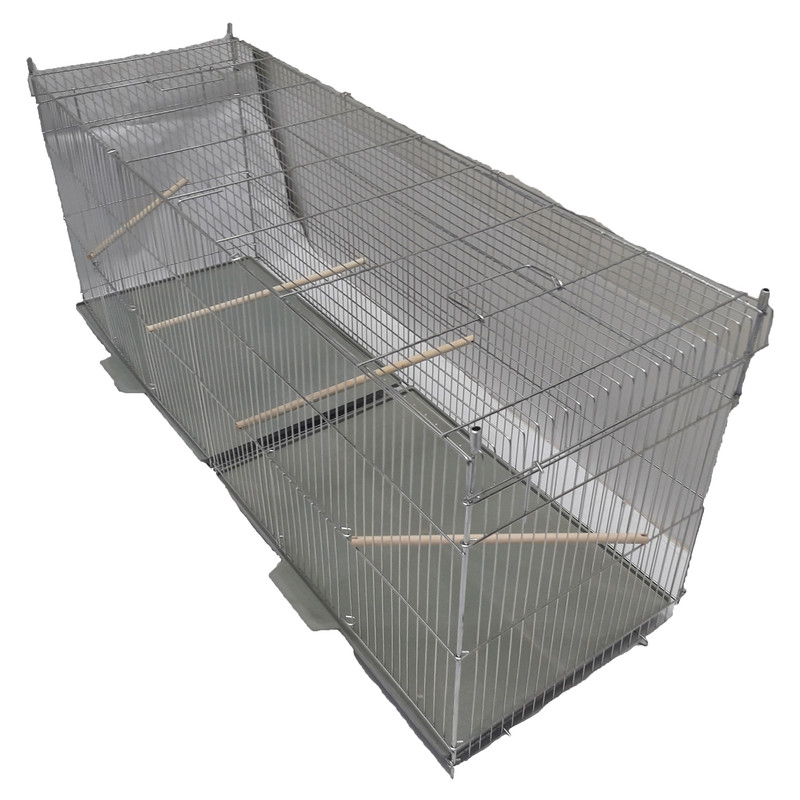 قفس مدل تاشو برای نگهداری پرندگان زینتی در منازل و فروشگاه های پرنده فروشی بسیار مناسب است.قطعات این قفس به طور کامل از هم جدا میشوند تا در هنگام تاشدن،قفس کمترین فضا را اشغال کند به طوری که این قفس در حالت تاشدن ابعادی 130x37x10 سانتی متری دارد و میتوان آن را در هر گوشه ای از منزل نگهداری کرد.در قسمت پایین و بالای قفس اتصالاتی وجود دارد که به وسیله ی آن ها میتوان 2 تا 3 از این قفس ها را به هم متصل کرد تا فضای بیشتری برای پرندگان ایجاد کند.برای سهولت استفاده از قفس این قفس دو درب و دو دستگیره دارد و به دلیل وزن کم میتوان آن را به دیوار متصل کرد.همچنین این قفس یک حائل وسط کشویی دارد که در صورت نیاز، به وسیله آن میتوان به راحتی این قفس را تبدیل به دو قفس مجزا کرد.این قفس به راحتی میتواند 3 جفت مرغ عشق یا 5 جفت فنچ و یا بین 2تا3 جفت طوطی را در خود نگهداری کند. 4 عدد چوب نشیمنگاه و دو عدد کفی پلاستیکی اقلام همراه این قفس هستند.