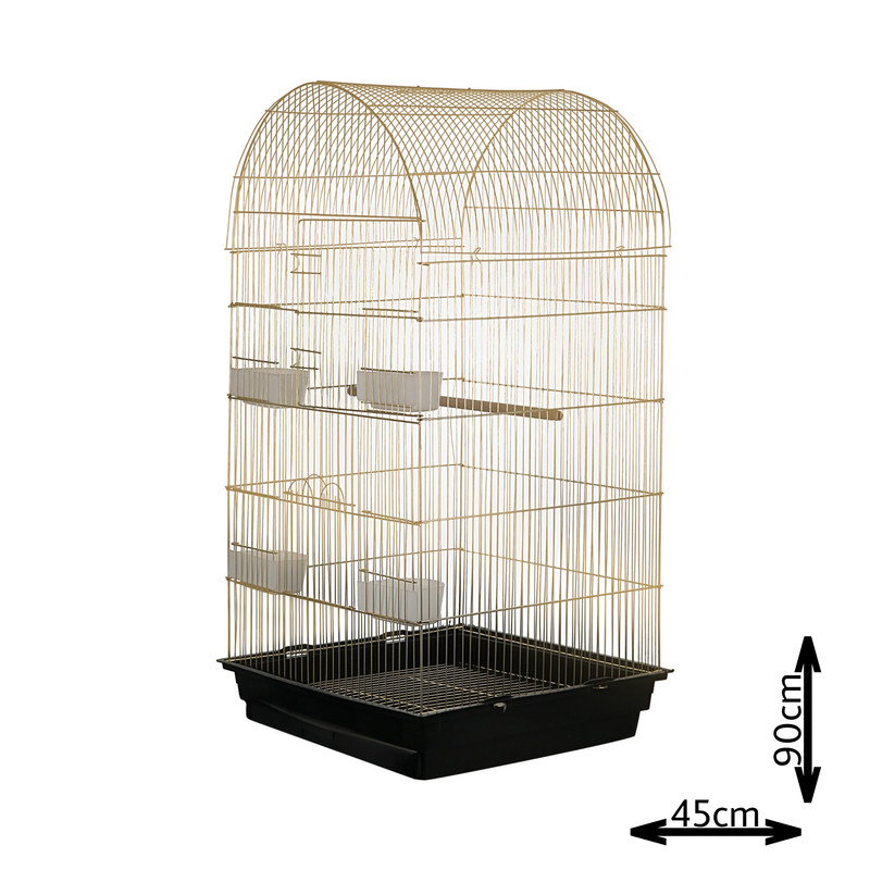 متعلقات همراه: یک عدد کفی کشویی پلاستیکی جهت سهولت در تمیز کردن یک عدد چوب نشیمنگاه ساده چهار عدد ظرف آب و غذا یک عدد توری فضله گیر