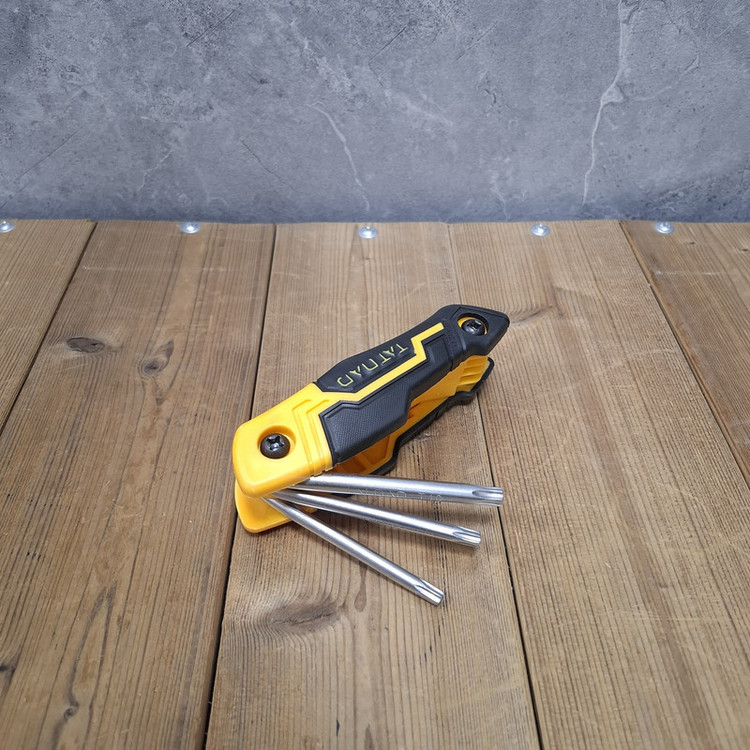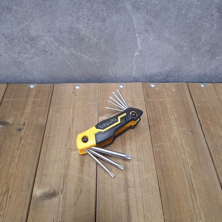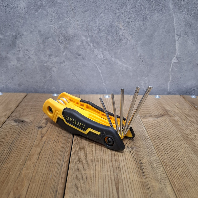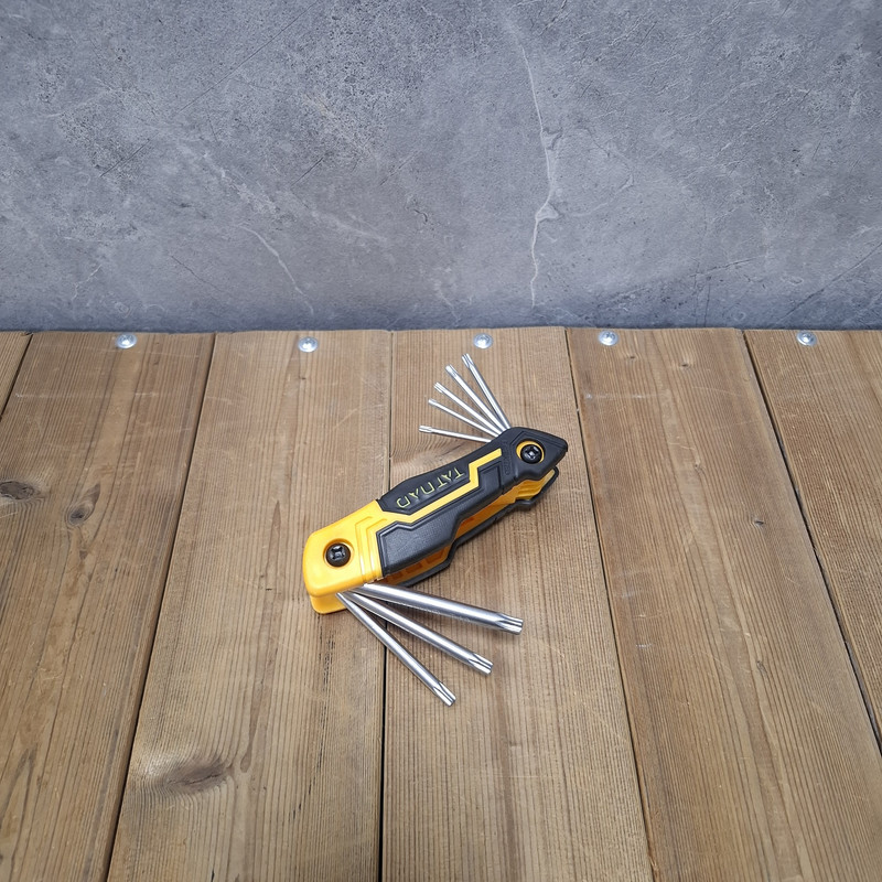 آچار ستاره ای تاتند مدا CR_V دارای 8 سایز مختلف شامل : T9, T10, T15, T20, T25, T27, T30, T40 می باشد. جنس هم آچار از کروم وانادیوم است.