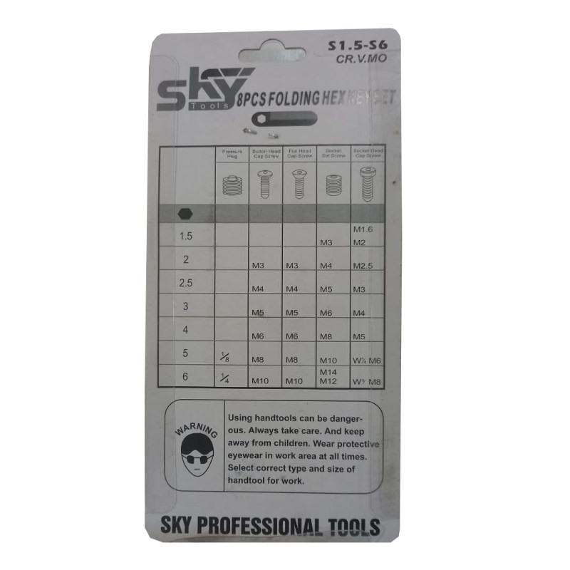 سایز آچار آلن ها: 1.5 - 2 - 2.5 - 3 - 3.5 - 4 - 5 - 6 آچار آلن شش گوش اسکای مدل D8 مجموعه 8 عددی