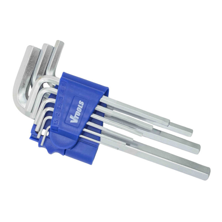 9 عدد آلنکلید با اندازههای مختلف. یک نگهدارنده پلاستیکی برای سازماندهی ابزارها