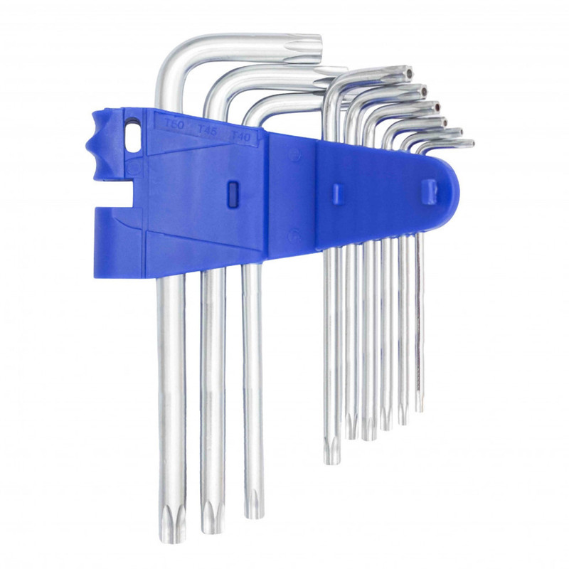 9 عدد آلنکلید با اندازههای مختلف. یک نگهدارنده پلاستیکی برای سازماندهی ابزارها