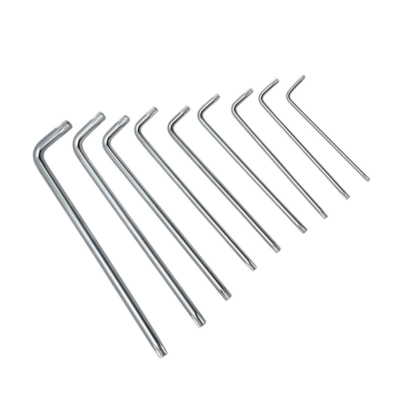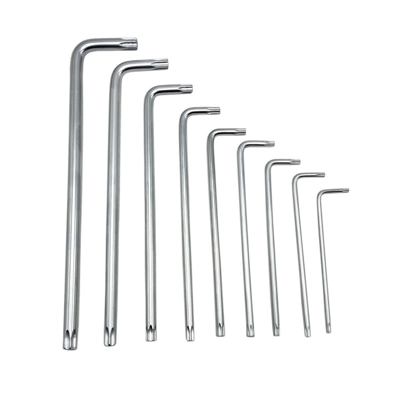 ۹ عدد آچار از نوع ستاره ای در سایز های T-۵۰، T-۴۵،T-۴۰،T-۳۰،T-۲۷،T-۲۵،T-۲۰،T-۱۵،T-۱۰ سری های آهنربایی برای راحتی استفاده، بدنه ای ساخته شده از فولاد کروم وانادیوم مقاوم در برابر زنگ زدگی ضربه و …