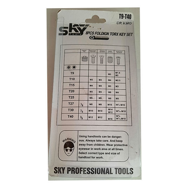 سایز آچار آلن ها:T9-T10-T15-T20-T25-T27-T30-T40 آچار آلن ستاره ای اسکای مدل D8 مجموعه 8 عددی