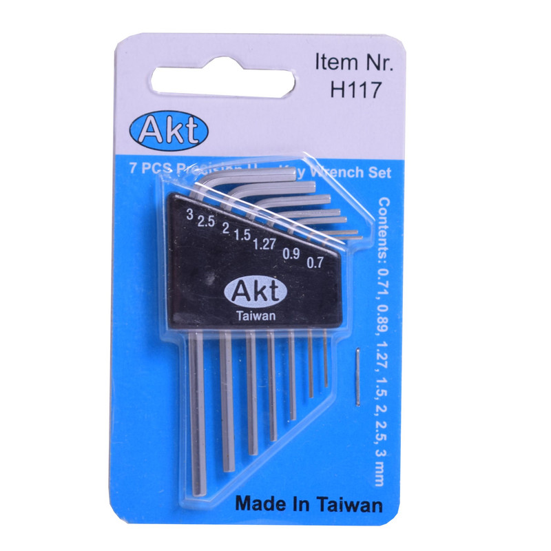 جنس کالاکروم وانادیومسایر توضیحاتشامل 7 آلن شش گوش ریز در سایزهای 0.7 ، 0.9 ، 1.27 ، 1.5 ، 2 ، 2.5 و 3 میلی متر کیفیت ساخت بالا مقاومت بالا هولدر پلاستیکی ساخت تایوانتعداد7 عدد