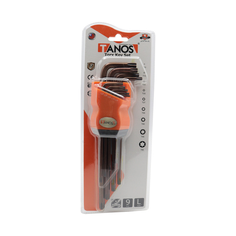 - آچار آلن ستارهای توخالی تانوس - مجموعه 9 عددی - در سایز های : T10 - T15 - T20 - T25 T - T27 - T30 - T40 - T45 - T50 - دو طرفه آلن دارای سری ستاره ای سوراخدار - کیفیت بالا - کاربردی