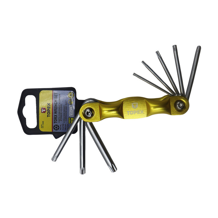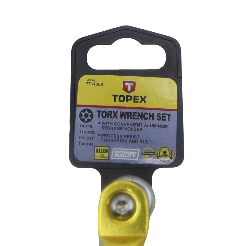 - آلن ستاره ای تاپکس مجموعه 8 عددی - دارای 8 عد آچار آلن ستاره ای در سایز های : T9 - T10 - T15 -T20 - T25 - T27 - T30 - T40 - جنس : کروم وانادیوم با مقاومت و کیفیت بالا - مدل چاقویی