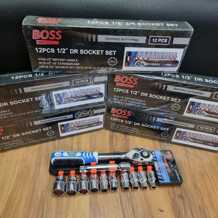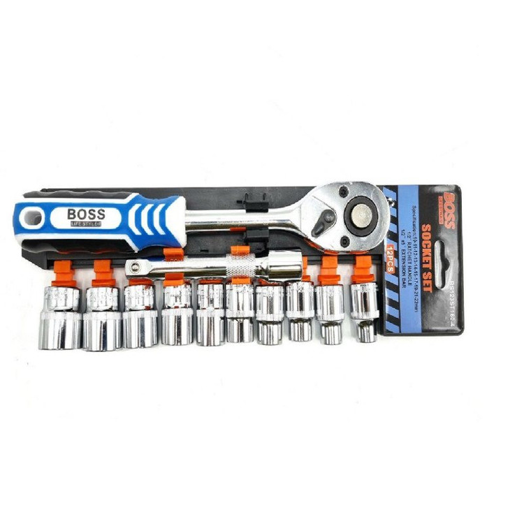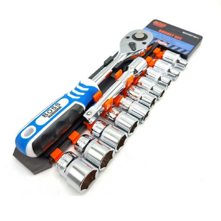 انواع بکس با سایزهای 10، 11، 12، 13، 14، 16، 17، 19، 21 و 22 میلیمتر یک عدد جغجغه بزرگ یک عدد کمکی کوتاه 12 سامنتیمنر