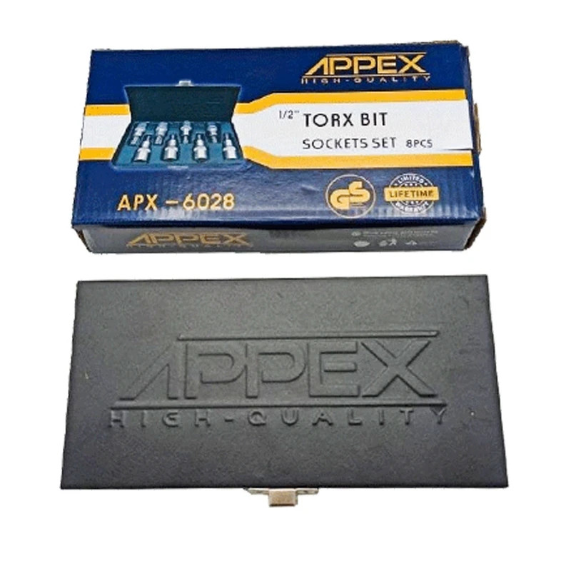 -جعبه آلن بکسی8پارچه اپکس -آلن بکسی ستاره ای 8عددی اپکس با جعبه فلزی بکسها بسیار مقاوم ازجنس CRV -سایز بکس ها;T20 ;T25;T27;T30;T40;T40;T50;T55;T60