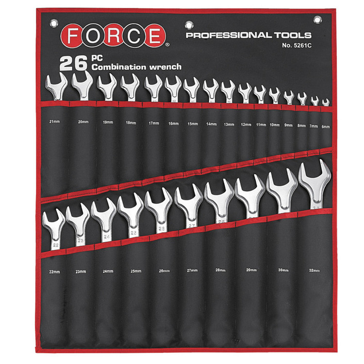 آچار یکسر تخت و یکسر رینگی فورس مدل 5261C مجموعه 26 عددی
