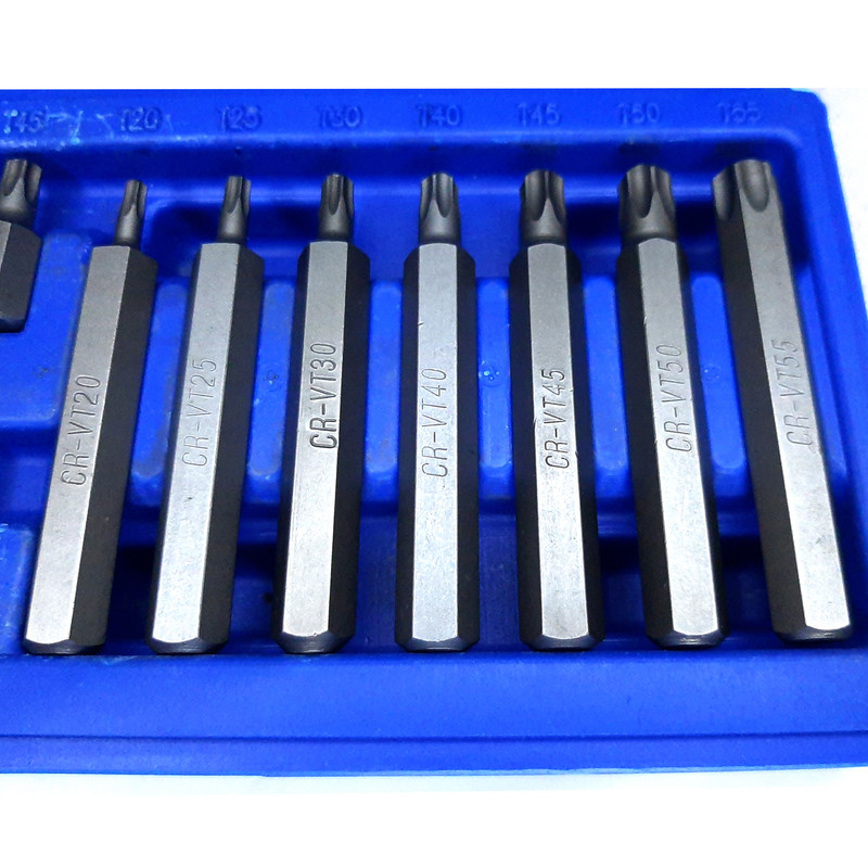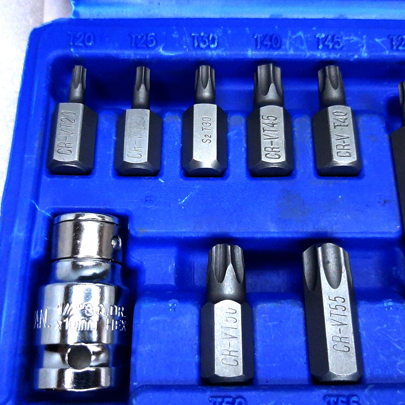 کیفیت عالی و ساخت درجه یک - مقاوم در برابر فشار - شامل 7 عدد بیت 7.5 سانتی متر -T20 - T25 - T30 - T40 -T45 - T50 - T55 , و شامل 7 عدد بیت 3 سانتی متر شامل T20 -T25- T30- T40 - T45 - T50 - T55 و یک عدد هولدر درایو 1/2