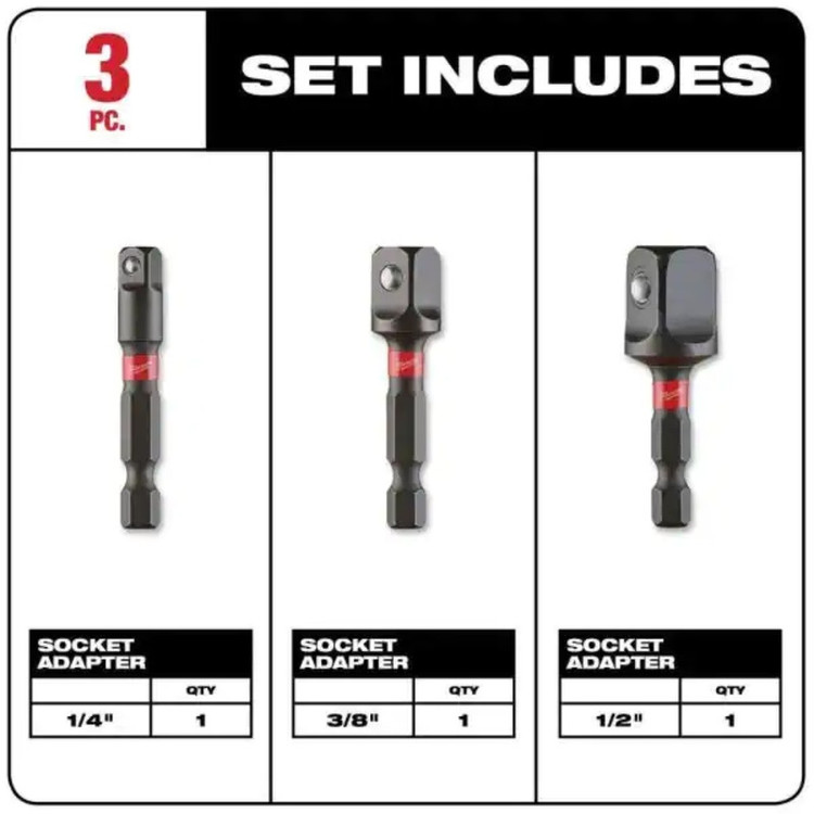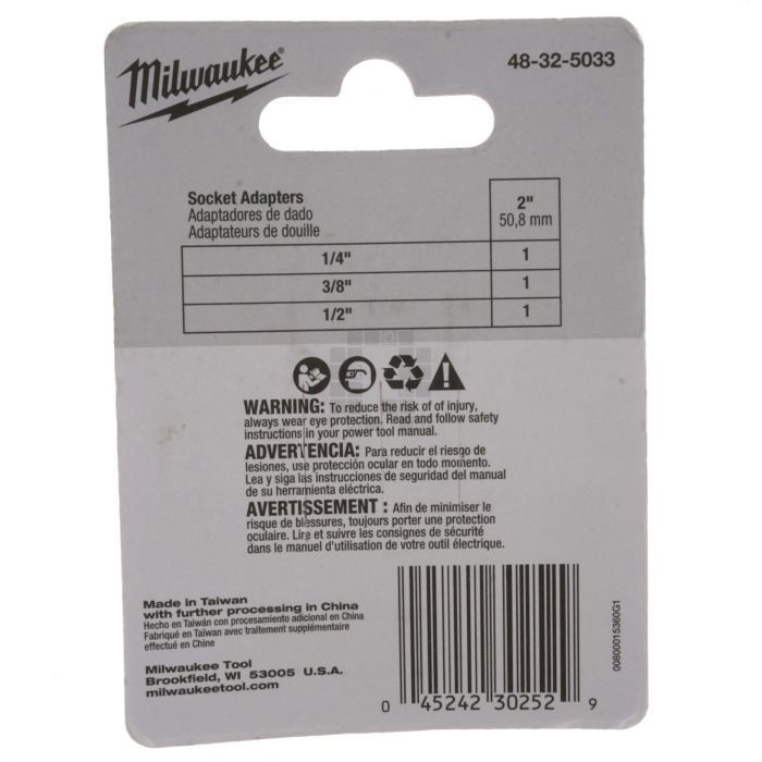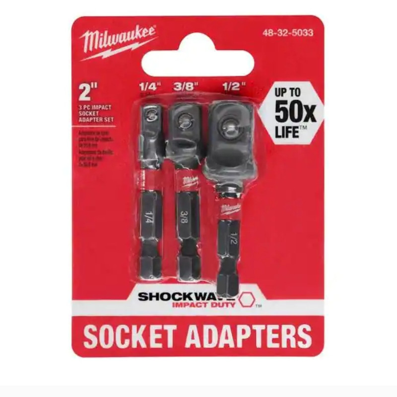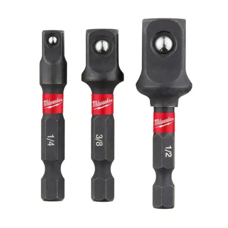3 عدد مبدل ایمپکت به بکس های 1/2 و 1/4 و 3/8 میلواکی جنس فولاد حرارت دیده و مقاوم شده طول هر مبدل 50.8 میلیمتر تا 50برابر بیشتر از موارد مشابه عمر ابزار میباشد 50x LIFE کیفیت بسیار بالا