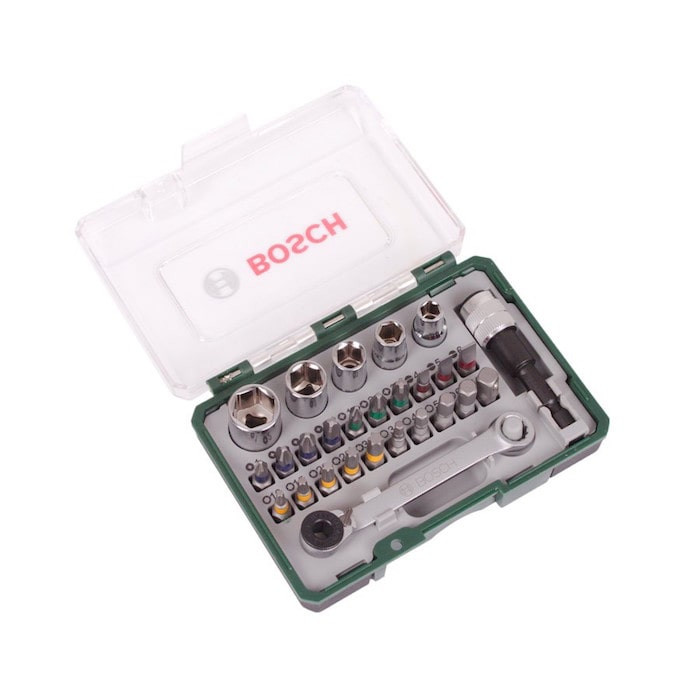 مجموعههای ابزار برای راحتی بیشتر کاربر به بازار عرضه میشوند. این مجموعهها با در بر داشتن چند ابزار در یک مجموعه، کمک زیادی به کاربر در پیش بردن سریعتر کار میکنند. مجموعه 27 عددی سری بکس و پیچ گوشتی ساخته شده توسط شرکت بزرگ «Bosch» «بوش» را مشاهده میکنید. این مجموعه تحت عنوان مدل (2607017160) به بازار عرضه شده است. جنس ابزار موجود در این مجموعه همگی از استیل است. کیفیت ساخت این ابزار با جنس استیل باعث مقاومت و استحکام بسیار بالا و همچنین ضد زنگ بودن این مجموعه شده است. یک عدد دسته جغجغه با قابلیت چرخش در هر دو جهت، یک عدد دسته پیچ گوشتی، یک عدد افزاینده طول و 24 عدد سری مختلف بکس و پیچ گوشتی در این مجموعه وجود دارد. مجموعه 27 عددی تولید شده توسط شرکت بوش دارای یک عدد کیف مخصوص بوده و گزینه مناسبی جهت انجام کارهای صنعتی است.