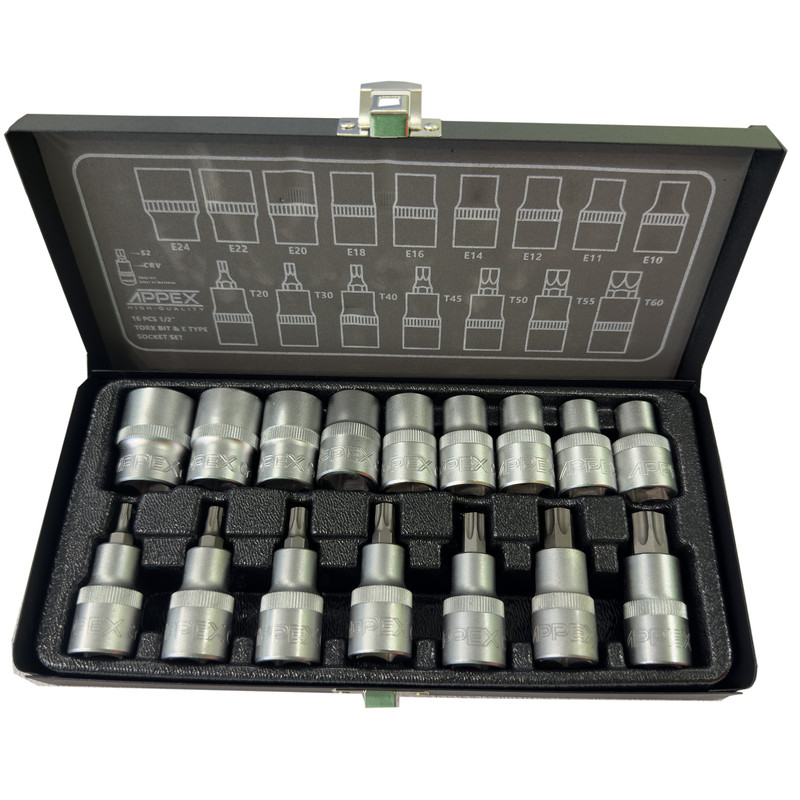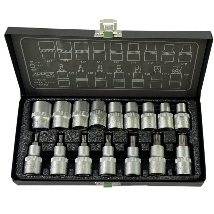آچار بکس ستاره ای اپکس مدلSMT-APPEX-ALEN BOXI-E -T1/2INCH-APX6016-NEW مجموعه 16 عددی
