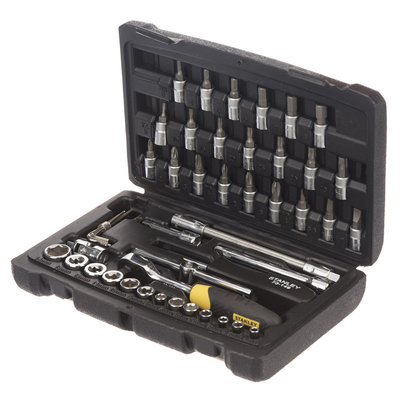 مجموعههای ابزار در سرعتبخشیدن به انجام کار نقش مهمی دارند. این مجموعهها با دربرداشتن چند ابزار در یک کیف یا جعبه، به کاربر در پیشبردن کار کمک بسیاری میکنند. مجموعهی 46عددی سری بکس و پیچگوشتی «Stanley» (استنلی) یکی از این ابزارهاست که تحتعنوان مدل «STMT72794-8» به بازار ارائه شده است. این مجموعه با وزن 1184 گرم در یک کیف کاور مخصوص قرار گرفته و شامل سریهای بکس و پیچگوشتی از جنس کروم - وانادیوم است. در این مجموعه 22سری پیچگوشتی هفت سری ستارهای، سه سری دوسو، سه سری چهارسو، سه سری چهارسو خاردار و شش سری آلن قرار گرفتهاند. همچنین در این مجموعه یک عدد دستهی جغجغهی 14سانتیمتری با سری 1/4 اینچ، چهار عدد آچار آلن، یک دستهی پیچگوشتی با سری 1/4 اینچ به طول 14 سانتیمتر، دو اضافهشوندهی طول 50 و 100 میلیمتری، یک لقلقهی 1/4 اینچی به طول 3.2 سانتیمتر، یک اضافهشوندهی طول فنری به طول 14.5 سانتیمتر، یک دستهی T شکل به طول 10.4 سانتیمتر و همچنین سیزده عدد سری بکس در اندازههای مختلف وجود دارد.