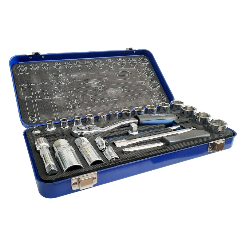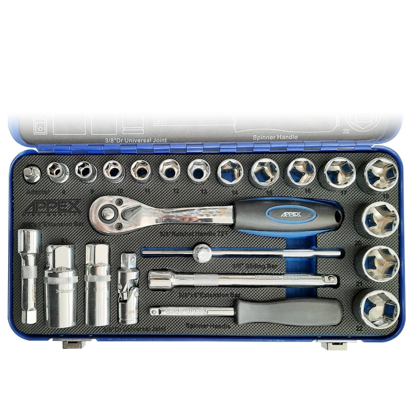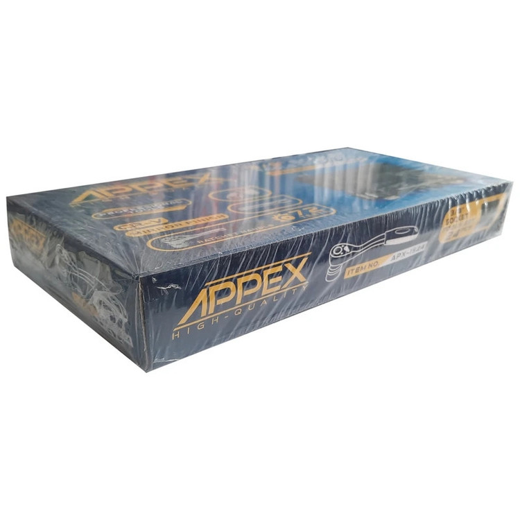 اگر قصد کاملکردن ابزارهای خود را دارید، میتوانید روی محصول فوق حساب کنید. این مجموعه 24عددی و شامل انواع سریهای پیچگوشتی، بکس و آچار اتصال به آنهاست. با دراختیارداشتن این محصول میتوانید بسیاری از پیچ و مهرهها را باز و بسته کنید. شرکت APPEX که یکی از بهترین سازنده های جعبه بکس می باشد این مجموعه درون جعبهای پلاستیکی عرضه شده است. وزن کل این مجموعه 2.5 کیلوگرم و جابهجایی آن راحت است. این مجموعهی جمعوجور از کیفیت ساخت خوبی برخوردار است.