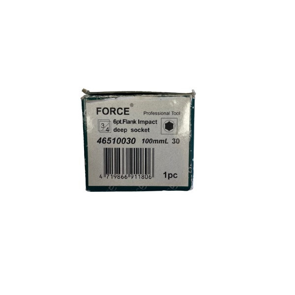 بکس بلند فشار قوی شماره 30 میلیمتر یکی از محصولات تولیدی شرکت تایوانی «فورس» (Force) است. اندازه شاخه اصلی این سوکت برابر با 100 میلیمتر است. شرکت فورس برای این بکس فشار قوی از آلیاژ کروم مولیبدن تقویت شده استفاده کرده است . این آلیاژ ساختاری مستحکم دارد و دربرابر فشار بالا و خوردگی مقاوم است. درایو این سوکت 3/4 اینچ می باشد. تمامی محصولات شرکت فورس دارای استاندارد CE اروپا بوده و تحت لیسانس کشور آلمان ساخته می شوند.